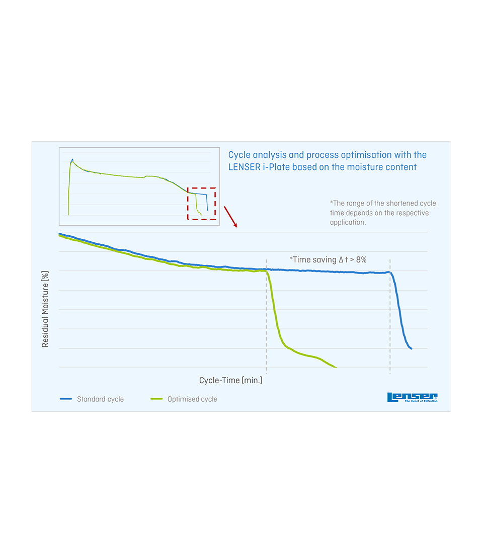 LENSER i-Plate为你的个人过滤过程提供了全新的见解。通过可靠的数字实时测量,你可以在持续运行期间收到压滤机的各种相关数据。通过这种方式,你可以深入了解你的流程,并可以优化它们。
